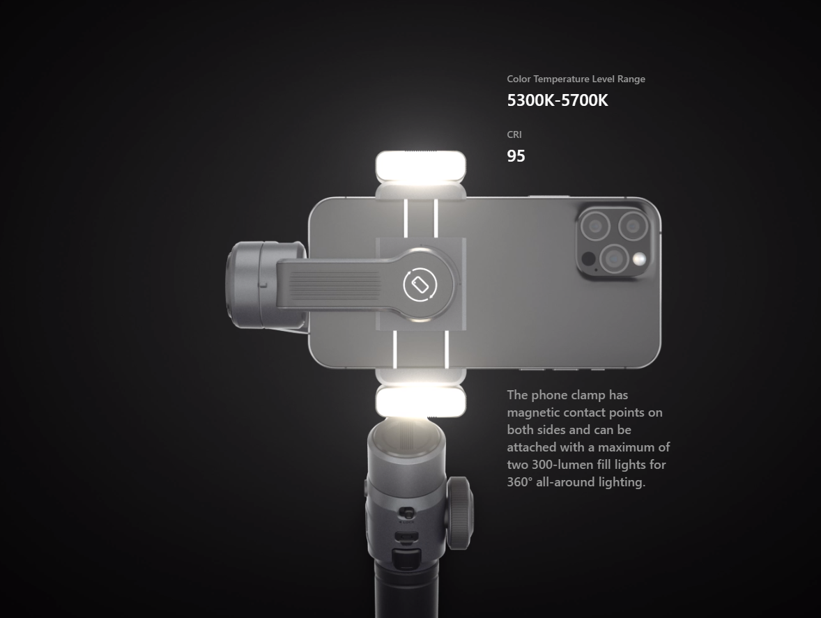 Professional magnetic steel motors with upgraded algorithm. The wider phone clamp ensures safer and easier filmmaking experience. Strong compatibility allows mounting a phone even with external lenses.