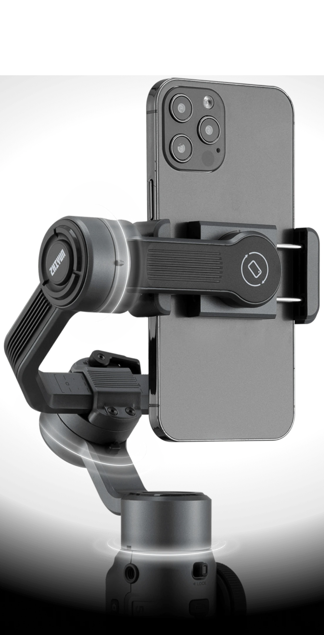 SMOOTH 5 makes cinematic filming with your smartphone possible. The industry-standard 3-axis design allows movements in all angles to be amazingly smooth, even in extreme angles. Take advantage of the full-control panel, paired with ZY Cami app to film all you want, all you do, and all you love.